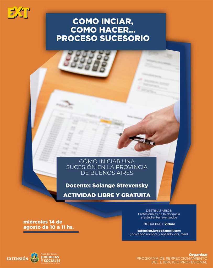 La Secretaria de Extensión invita a participar al ciclo «COMO INICIAR, COMO HACER… PROCESO SUCESORIO», en el cual se dictarán charlas en las que se explique en forma clara y práctica cómo deben iniciarse determinados procesos.