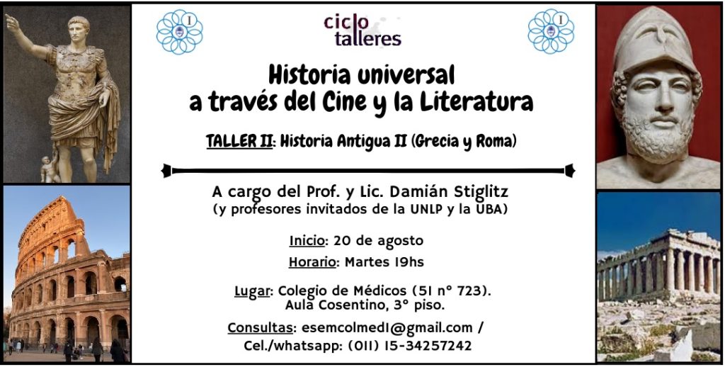 El Colegio de Médicos de la Provincia de Buenos Aires, Distrito I, invita al Ciclo Talleres: Historia Universal a través del Cine y la Literatura.
