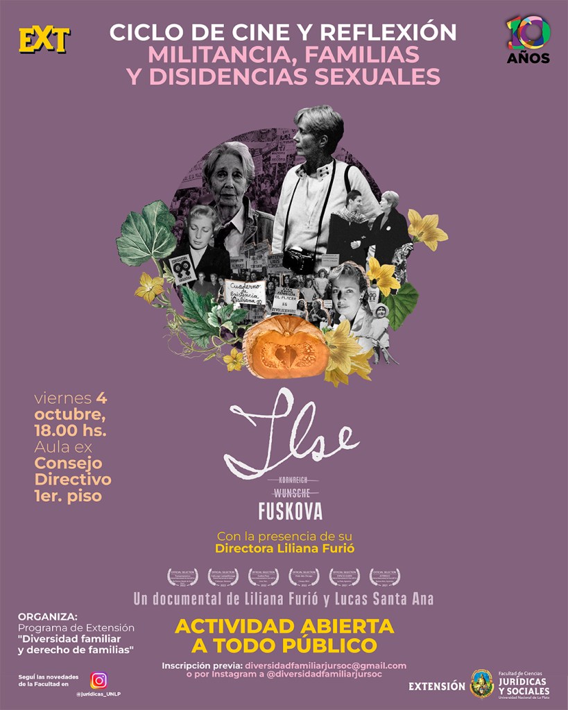 A 10 años de la creación del Programa de Extensión Universitaria “Diversidad familiar y derecho de las familias” comenzamos este ciclo de cine y reflexión con la proyección de “Ilse Fuskova”, documental dedicado a la artista y activista por la visibilidad lésbica.