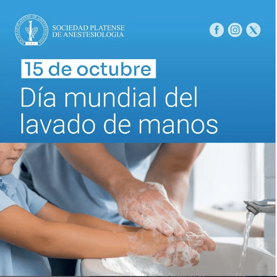 Desde la Sociedad Platense de Anestesiología, y aprovechando la semana de concientización, te invitamos a ser parte de la 2da charla abierta y gratuita a la comunidad “El lavado de manos en la seguridad del paciente” este jueves 17/10 a las 18:00 hs en la SPA (57 n° 1228 entre 19 y 20).