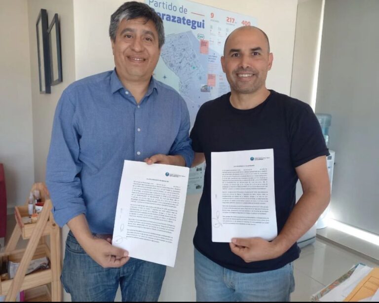 El Presidente del Colegio de Profesionales de Higiene y Seguridad de la Provincia de Buenos Aires, Lic. Lorenzo Gómez junto con el Subsecretario de Habilitaciones e Inspecciones Comerciales e Industriales y Bromatología de la Municipalidad de Berazategui, Martin Agromartin firmaron un convenio de colaboración recíproca.