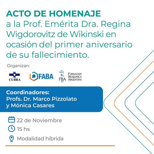 Te invitamos a participar del Acto homenaje a la Prof. Emérita Dra. Regina Wigdorovitz de Wikinski en ocasión del primer aniversario de su fallecimiento.