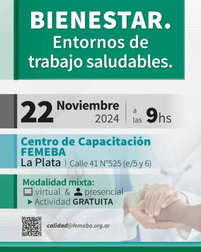 Te acercamos información sobre el Simposio de Calidad 2024 – Bienestar «Entornos de trabajo Saludables» a cargo del Centro de Capacitación FEMEBA.