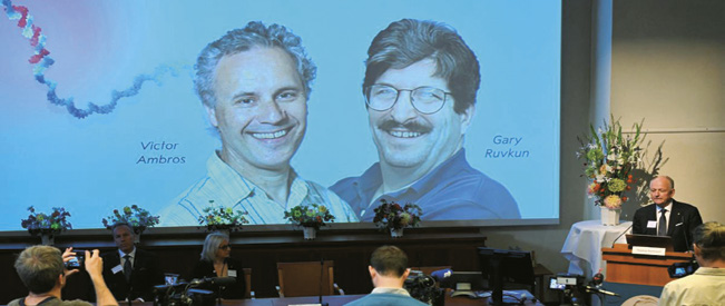El jurado premió a dos científicos estadounidenses Victor Ambros y Gary Ruvkun, por descubrir una molécula esencial para el desarrollo y funcionamiento de los seres vivos. Sus hallazgos abrieron un campo importantísimo en la biología molecular, ya que estos pequeños ARN se están usando como herramientas terapéuticas para controlar genes o como marcadores de enfermedades en la práctica clínica.