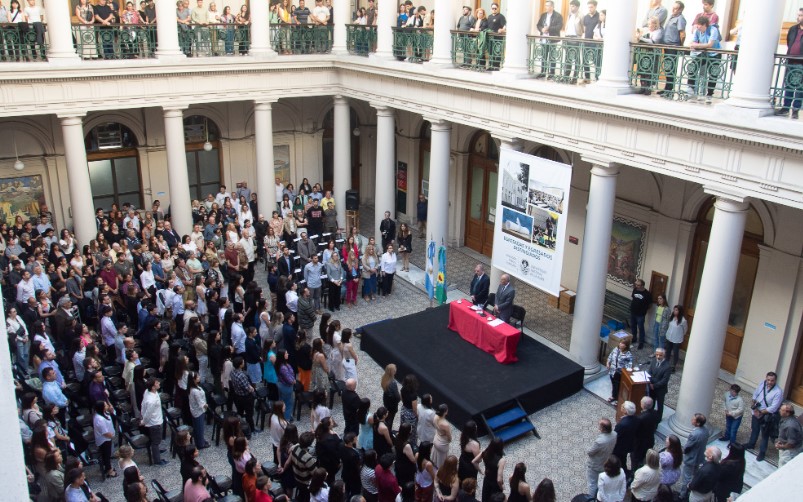 El presidente de la UNLP, Martín López Armengol, encabezó la ceremonia, acompañado por el secretario Académico, Anibal Viguera, los decanos de la Facultades, directores de los colegios, y autoridades universitarias.