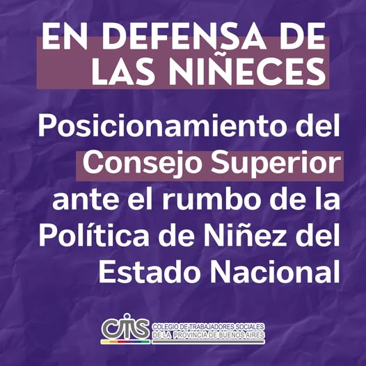 El Colegio de Trabajadorxs Sociales de la Provincia de Buenos Aires, reunido en sesión ordinaria de Consejo Superior del mes de diciembre de 2024, manifiesta su rechazo a los cambios y direccionalidad que asume la política de niñez en el actual gobierno nacional. En un contexto de agudización de las condiciones de pobreza que afecta a amplios sectores de la población argentina, las niñeces se ven expulsadas a la pobreza e indigencia, generando una espiral de vulneración de derechos que nos interpela como sociedad.