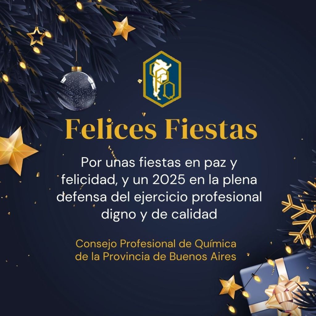 ▪ En el cierre de este 2024, desde el Consejo Profesional de Química de la Provincia de Buenos Aires, saludamos a todos los colegas matriculados, deseando unas fiestas en paz y felicidad, en compañía de sus seres queridos.