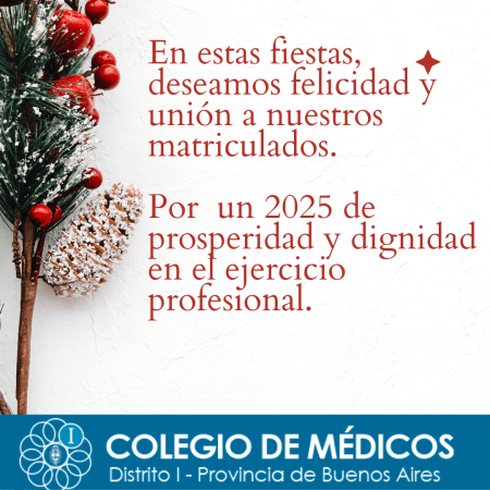 El Colegio de Médicos Distrito I deseó «unión y paz en estas fiestas, y un 2025 de prosperidad y dignidad profesional»