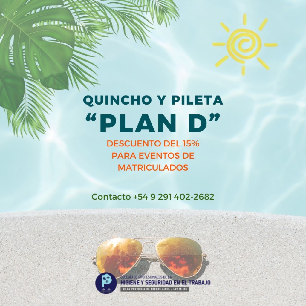 Los matriculados al Colegio de Profesionales de Higiene y Seguridad de la Provincia de Buenos Aires tienen la posibilidad de realizar sus eventos en “Plan D” (Quincho y Pileta), en Bahía Blanca, accediendo a un descuento del 15%.