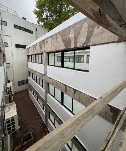 Actualmente la obra continúa avanzando con la ejecución de pisos, colocación de las carpinterías de aluminio, cielorrasos y tabiques divisorios de placa de roca de yeso y pintura exterior.