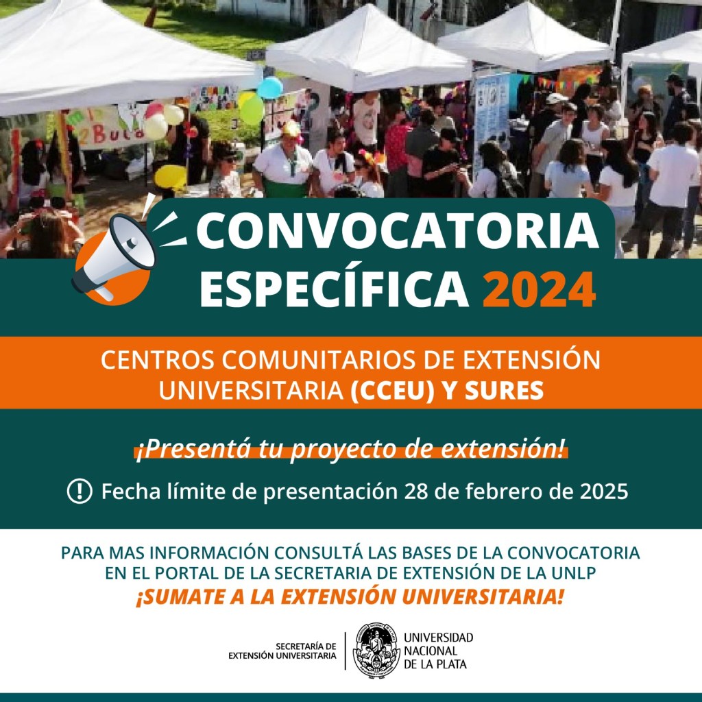 La convocatoria específica es organizada por la Universidad Nacional de La Plata con el objeto de fortalecer el dispositivo de Centros Comunitarios de Extensión Universitaria (CCEU) y del Sures (Sistema Universitario Regional de Salud).