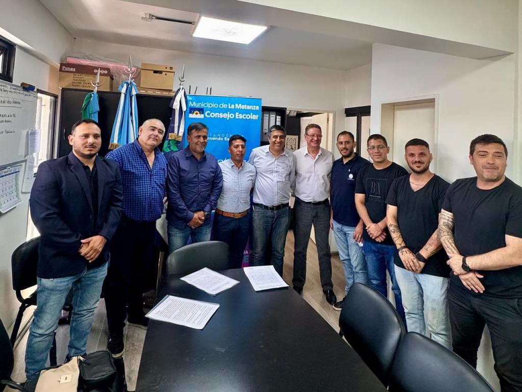 Acompañaron el acto de firma de convenio el Secretario del Consejo Escolar de La Matanza, Daniel Jouan; el Inspector de Escuelas Técnicas, Emilio Lombardo; el Presidente de Centro de Técnicos, Mariano Borras y Ivan Colman, representante del gremio Suetra.