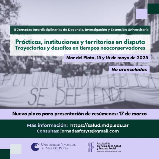 Socializamos información de las II Jornadas Interdisciplinarias de Docencia, Investigación y Extensión Universitaria, organizadas en la Facultad de Ciencias de la Salud y Trabajo Social de la Universidad Nacional de Mar del Plata.