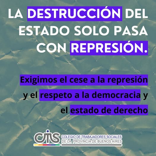 La impune y cruda represión desplegada el día de ayer en la marcha de jubiladxs, cada vez mas recurrente y anticonstitucional, demuestra la dirección del gobierno nacional. Desde el CATSPBA exigimos un cese urgente a la política represiva y criminalizante del gobierno.