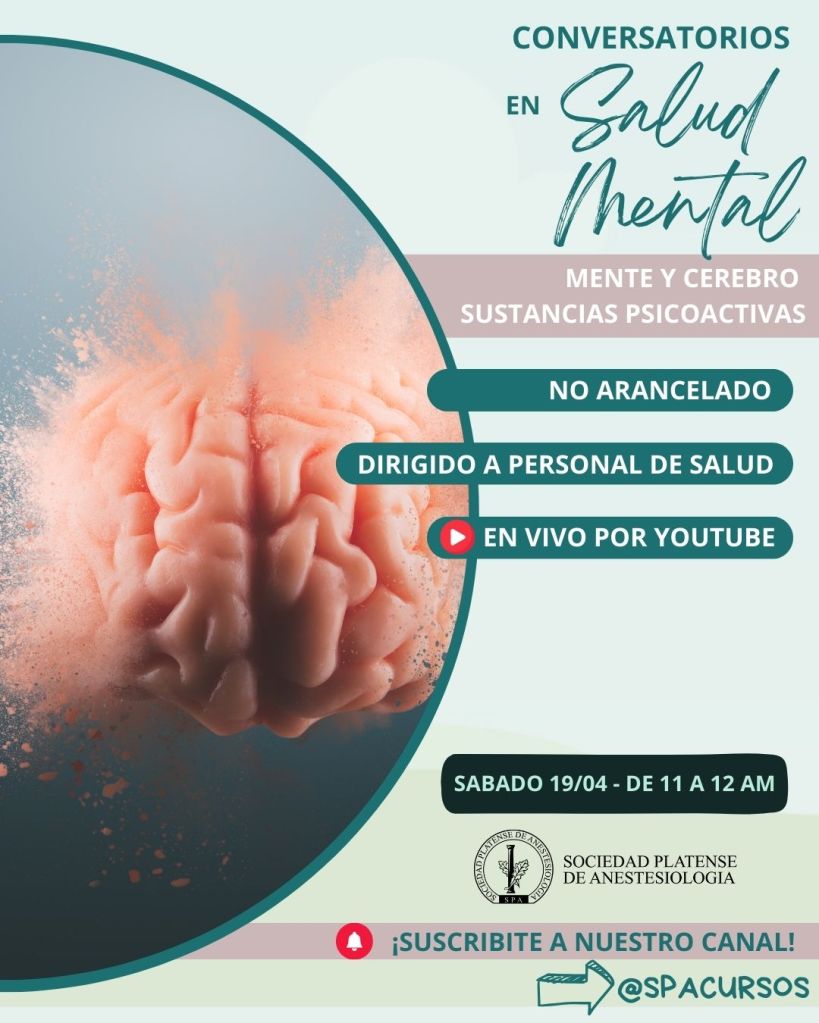Con el objetivo de promocionar el tema de salud mental en el personal de salud el sábado 19 de abril, de 11 a 12, por plataforma Zoom, se realizará el segundo encuentro virtual del ciclo Conversatorios de Salud Mental. Abordará el tema «Mente y cerebro. Sustancias psicoactivas»