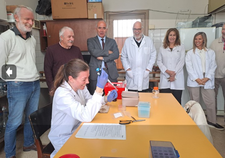 La visita contó con la presencia de la vicedecana, Prof. Méd. Mónica Ferreras; la secretaría de Ciencia y Técnica, Prof. Dra. Sabina Maté y el director del CENEXA, Prof. Dr. Flavio Francini.