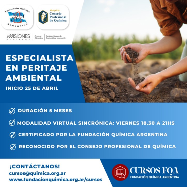 Inscripciones y consultas: https://fundacionquimica.org.ar/cursos/cursos/especializacion-en-peritaje-ambiental/