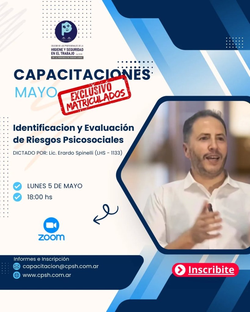 En el marco del programa de capacitación constante del #CPSH te invitamos a participar de la capacitación titulada «Identificación y Evolución de Riesgos Psicosociales»