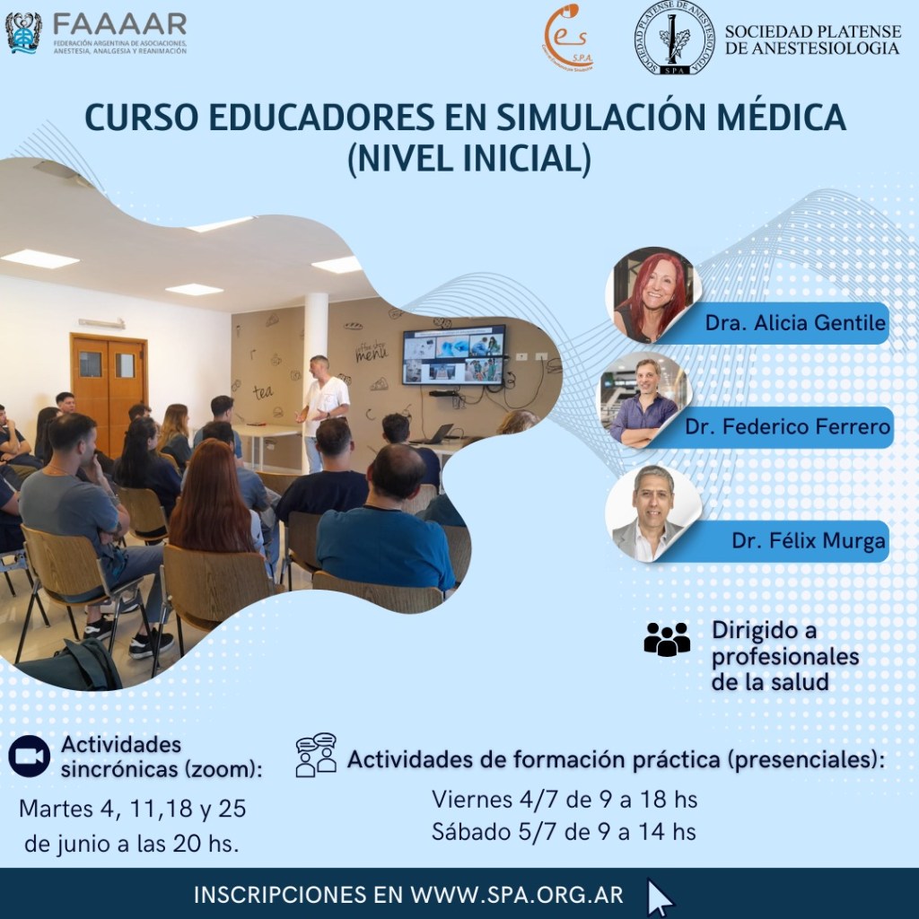 Con destacados profesionales, organizado por el Centro de Enseñanza por Simulación de la Sociedad Platense de Anestesiología (Cesspa) se realizará el curso educadores en simulación médica.