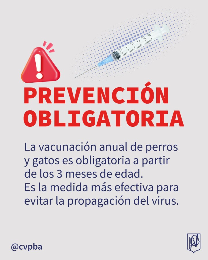 - La vacunación anual de perros y gatos, a partir de los 3 meses de edad, es obligatoria y esencial.