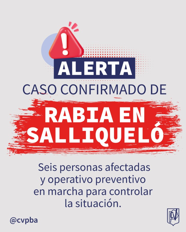 El Colegio informa sobre la confirmación de un caso de rabia felina en la localidad de Salliqueló, con seis personas afectadas tras el ataque de un gato infectado. El animal falleció al ser atropellado, y el diagnóstico fue confirmado por el Instituto Malbrán.