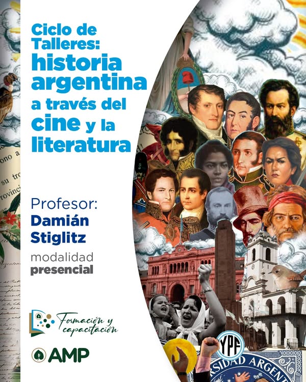 Este ciclo de talleres propone un recorrido por los grandes momentos de la historia argentina abordando cada periodo a través de una combinación de clases teóricas, proyección de películas y lectura de novelas que recrean los contextos históricos. Cada taller se centrará en una etapa diferente, permitiendo una comprensión profunda y vivencial de los procesos que marcaron nuestro pasado.