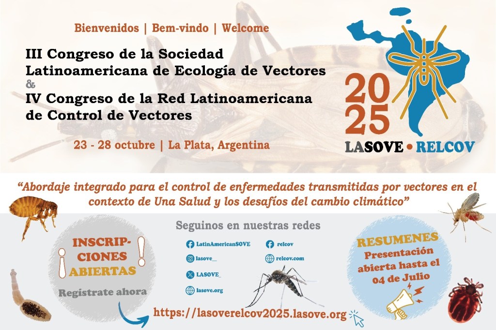 Del 23 al 28 de octubre de 2025 se realizará en La Plata el III Congreso de la Sociedad Latinoamericana de Ecología de Vectores y IV Congreso de la Red Latinoamericana de Control de Vectores.