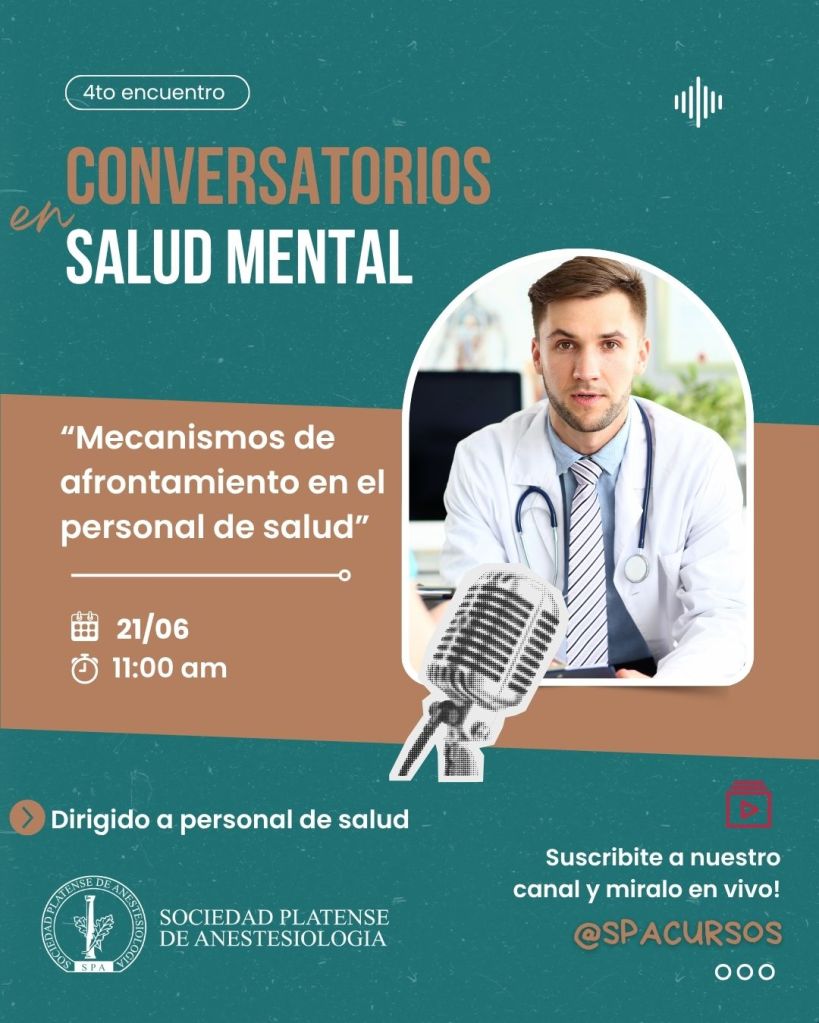 Con una gran convocatoria, continúan los encuentros del Conversatorio en Salud Mental en el personal de salud. El próximo encuentro será el sábado 21 de junio, de 11 a 12 y el tema será «Mecanismos de afrontamiento en el personal de salud».