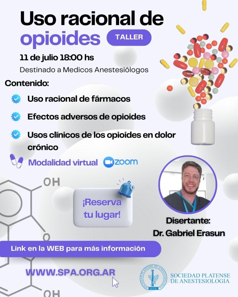El próximo 11 de julio a las 18 se realizará un webinar con encuentro virtual sobre «Uso racional de opioides», a cargo del doctor Gabriel Erasun.