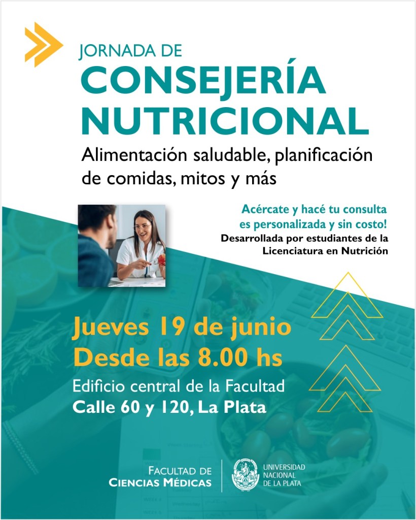 El próximo jueves 19 de junio se realizará una jornada de consejería nutricional en la facultad, destinada a brindar orientación personalizada sobre hábitos alimentarios, sin costo y abierta a toda la comunidad académica.