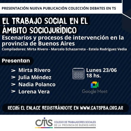 Compilado por Mirta Rivero, Marcelo Echazarreta y Estela Rodriguez Vedia, el libro El Trabajo Social en el ámbito sociojurífico. Escenarios y procesos de intervención en la provincia de Buenos Aires, recoge los trabajos seleccionados de la convocatoria abierta realizada por el Colegio Profesional oportunamente.