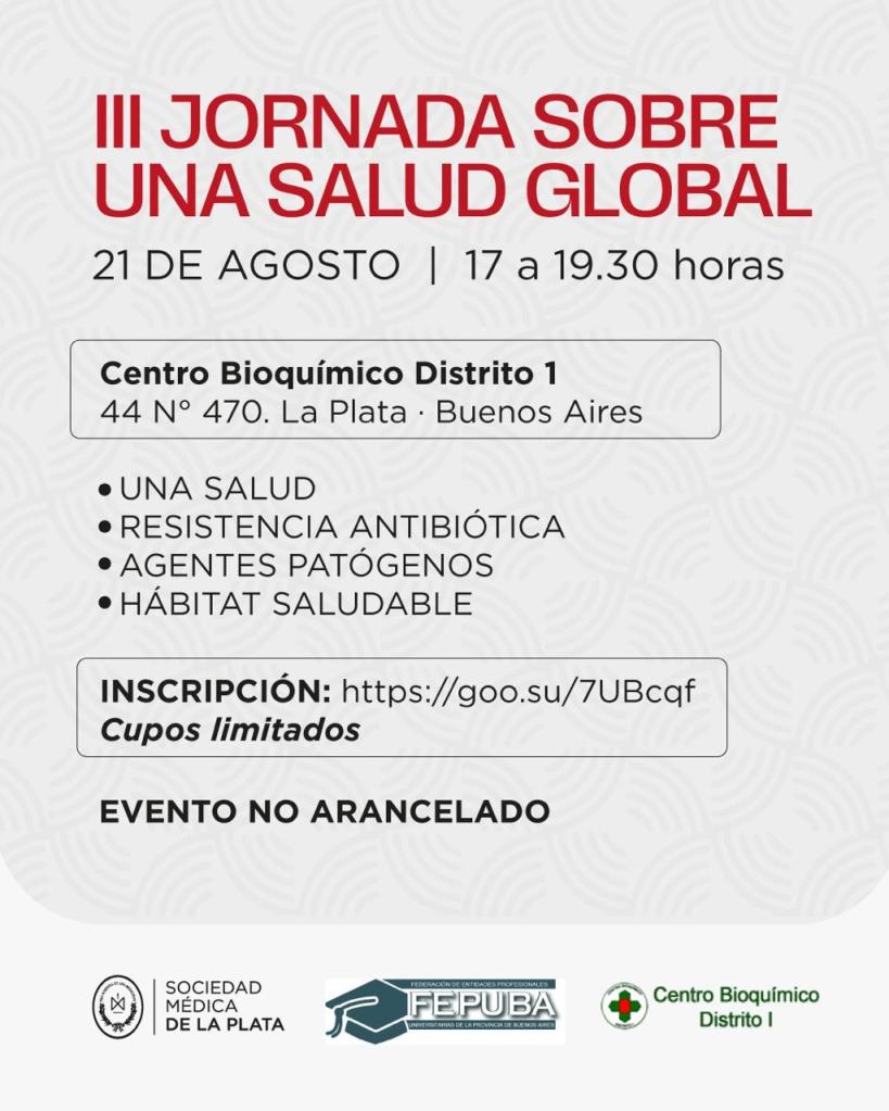 El evento se llevará a cabo en el Centro Bioquímico, ubicado en la calle 44, número 470, en la Ciudad de La Plata. La actividad, que es gratuita, requiere inscripción previa para poder garantizar su lugar. Les animamos a reservar su asistencia mediante el siguiente enlace: https://goo.su/UBcqf. Agradecemos de antemano su interés y participación en esta jornada que busca fortalecer la conciencia sobre la salud global y su impacto en nuestras comunidades.