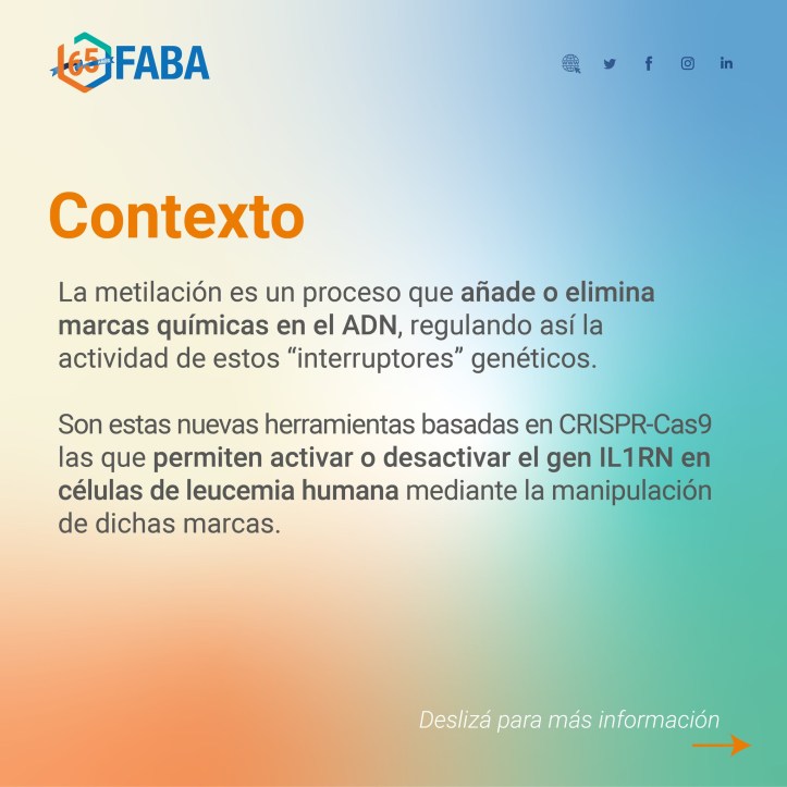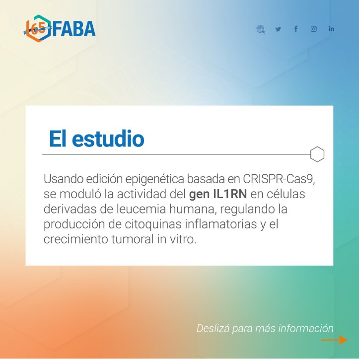 Con edición epigenética basada en CRISPR-Cas9, investigadores lograron activar o desactivar el gen IL1RN, modulando así la respuesta inflamatoria y el crecimiento tumoral in vitro.