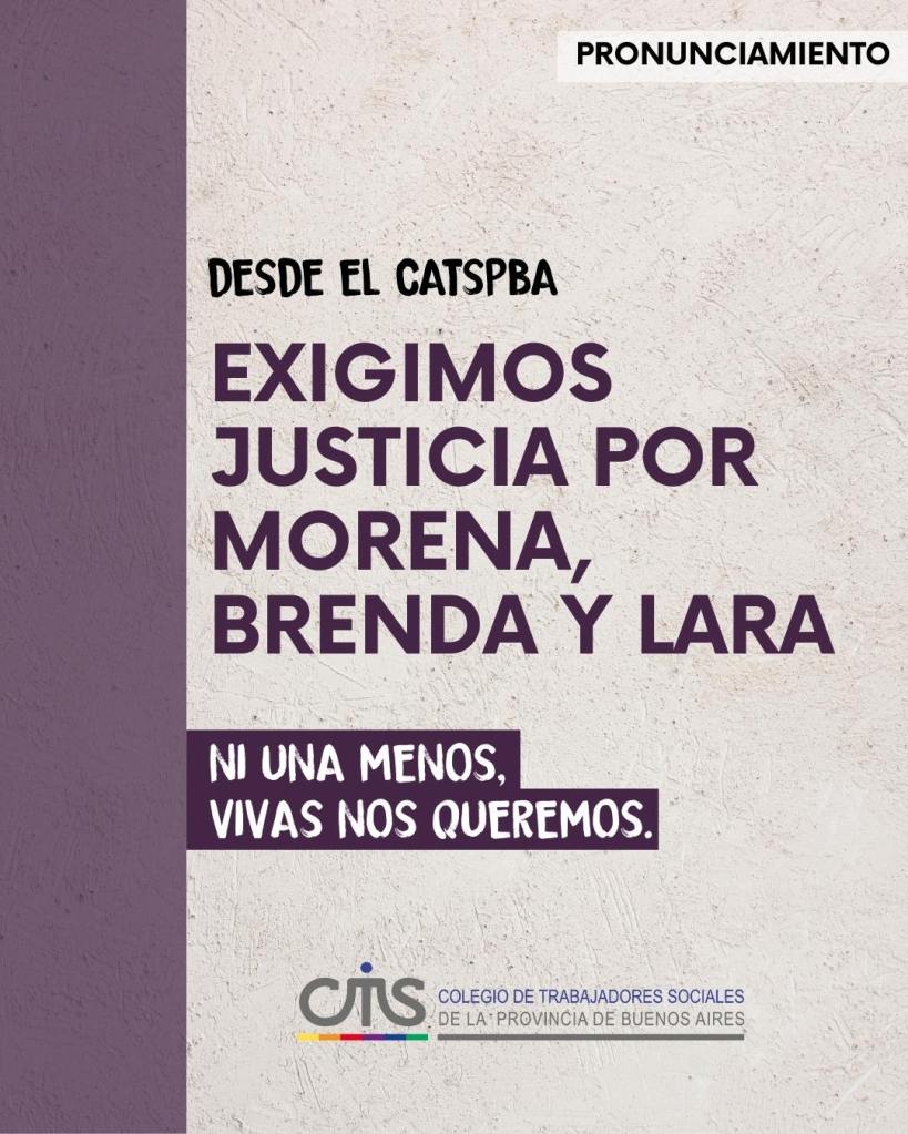 Desde el CATSPBA exigimos justicia para Morena, Brenda y Lara. El Estado es responsable.