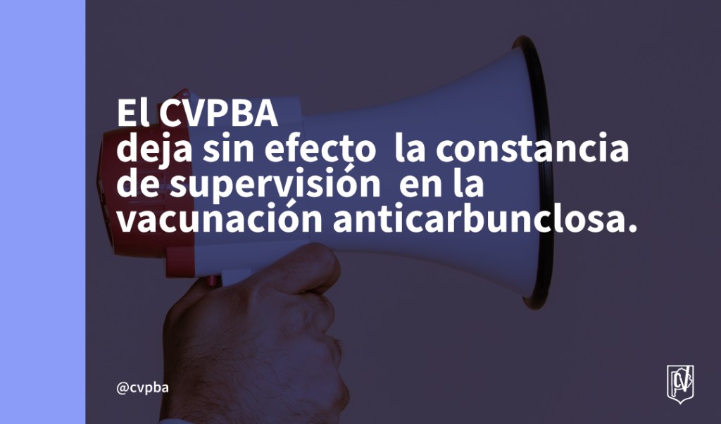 El Consejo Directivo del Colegio de Veterinarios de la Provincia de Buenos Aires (CVPBA) emitió la Resolución N° 288/2025, mediante la cual se deja sin efecto el uso de la “constancia de supervisión” en el marco del Programa de Control del Carbunclo Bacteriano Bovino.