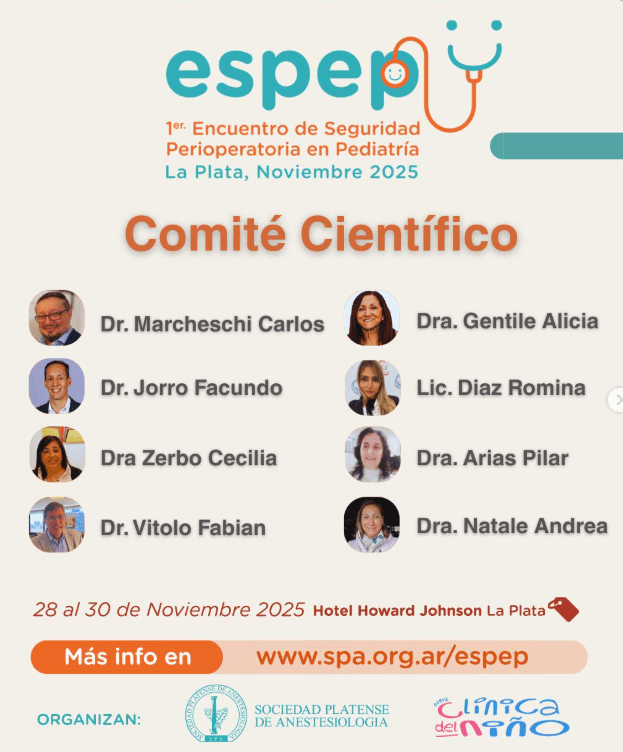 Ya llega el primer Encuentro de Seguridad Perioperatoria en Pediatría, organizado por la Sociedad Platense de Anestesiología (SPA) junto a la Nueva Clínica del Niño.