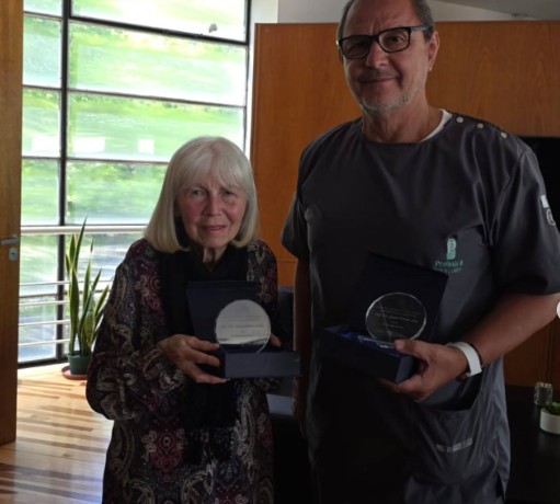 Los profesores Dra. María Mercedes Medina y Dr. Lazo Gabriel que recibieron el “Reconocimiento a la Trayectoria Científica” en virtud de sus contribuciones para la promoción del conocimiento científico y la formación de recursos humanos.