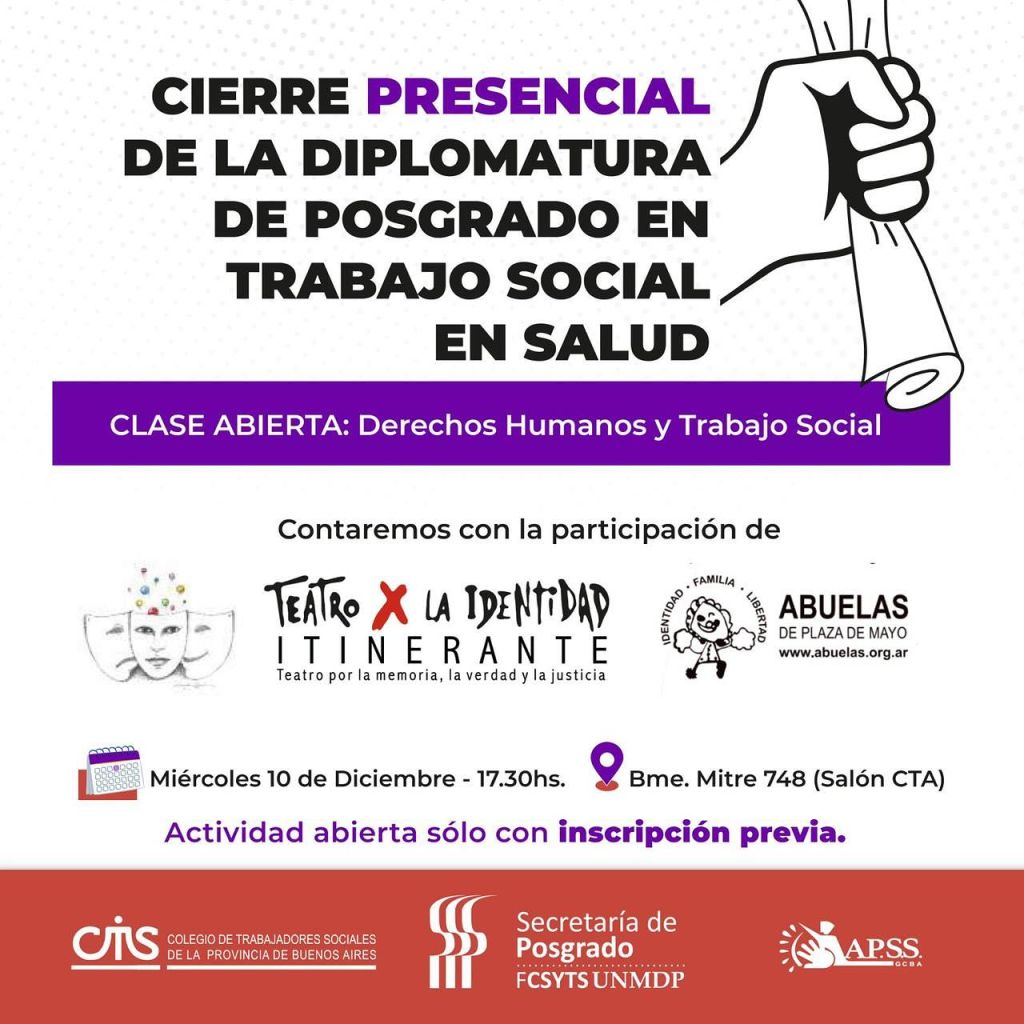 Desde la Diplomatura de Posgrado en Trabajo Social en salud, el 10 de Diciembre nos encontraremos realizando el cierre de la misma.