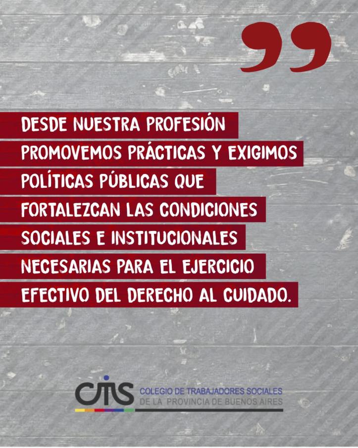 Desde nuestra profesión promovemos prácticas y exigimos políticas públicas que fortalezcan las condiciones sociales e institucionales necesarias para el ejercicio efectivo del derecho al cuidado.