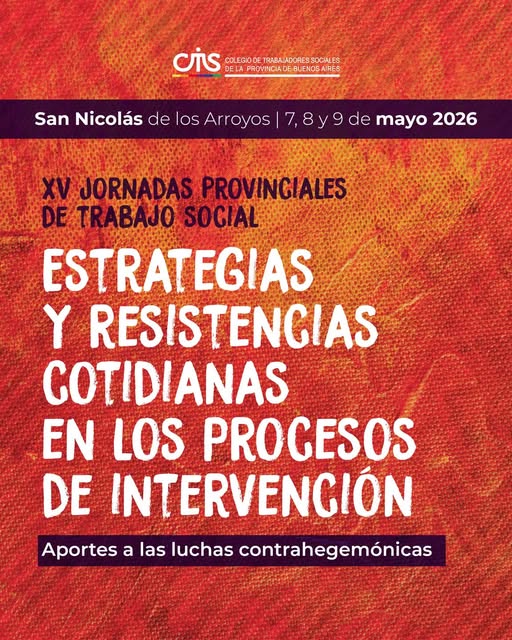 Con el título »Estrategias y resistencias cotidianas en los procesos de intervención: aportes a las luchas contrahegemónicas», las XV Jornadas se llevaran a cabo los días 7, 8 y 9 de mayo de 2026 en San Nicolas de los Arroyos.