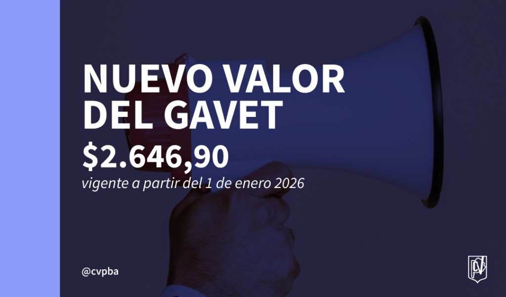 El CVPBA pone en conocimiento de los matriculados que el Consejo Directivo, a través de la RESOLUCIÓN N 394 resolvió fijar el valor del GAVET en la suma de $2.646,90 con vigencia a partir del 1 de enero 2026.