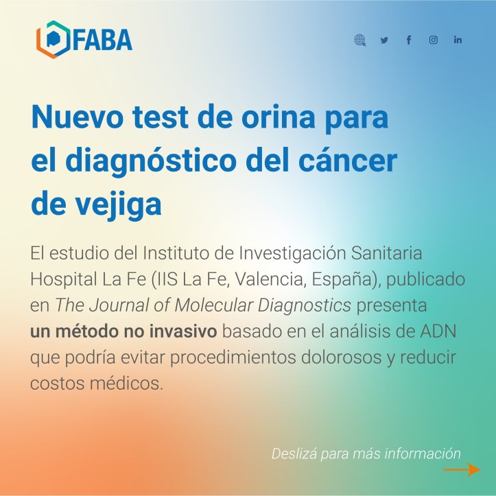 Un estudio publicado en The Journal of Molecular Diagnostics presenta un nuevo test de orina basado en el análisis de ADN libre tumoral (cfDNA). Esta metodología permite detectar cáncer de vejiga con alta precisión, evitando procedimientos invasivos como la cistoscopia en etapas iniciales.