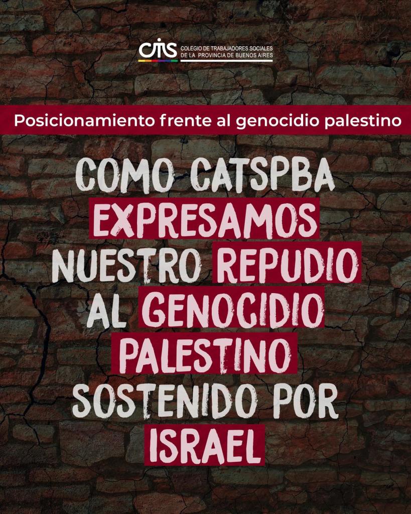 Desde el Colegio de Trabajadorxs Sociales de la Provincia de Buenos Aires expresamos nuestro repudio al genocidio del pueblo palestino y a toda forma de violencia contra la población civil.
