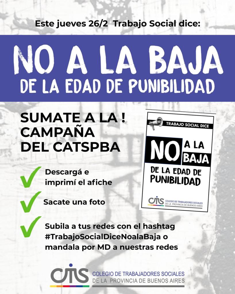 Ante la reforma del Régimen Penal Juvenil, este jueves 26/2 invitamos a esta acción de visibilización por redes: Trabajo Social dice NO a la baja de la edad de punibilidad.