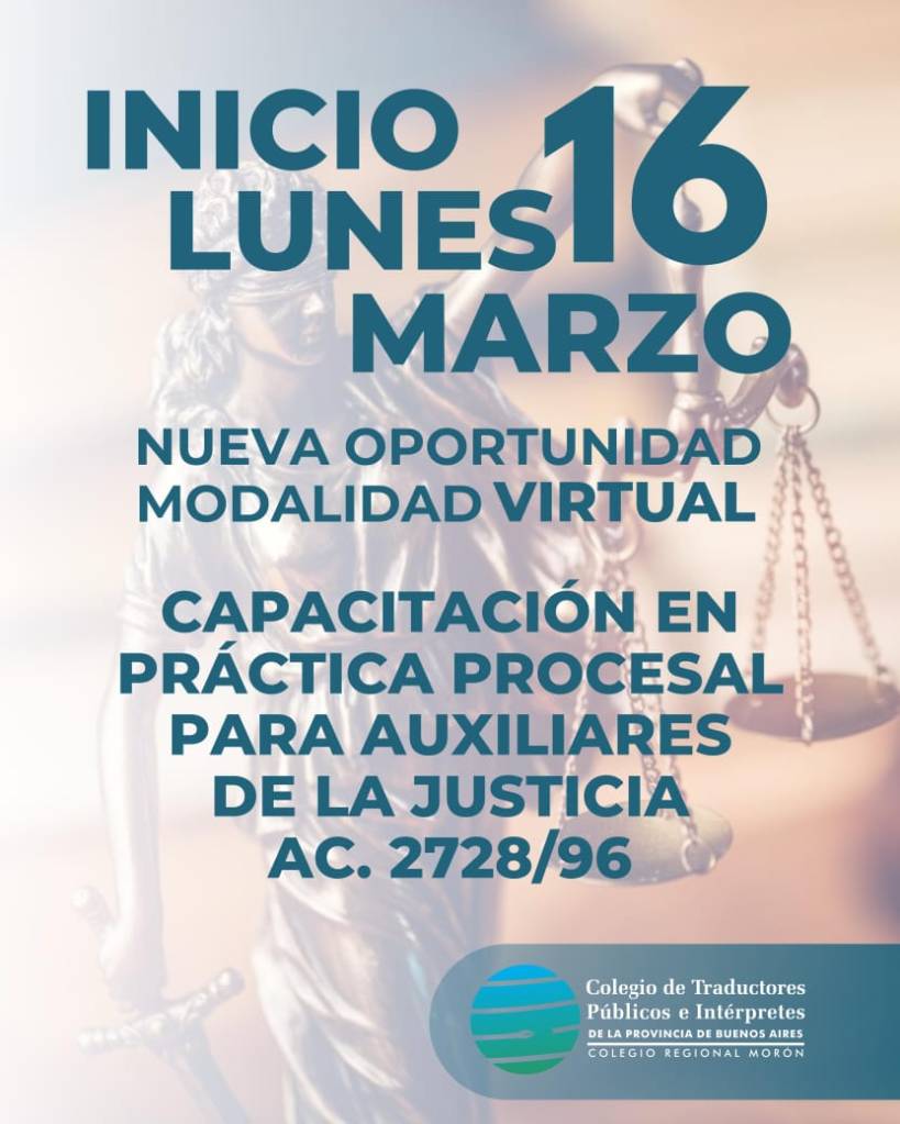 𝗖𝗮𝗽𝗮𝗰𝗶𝘁𝗮𝗰𝗶ó𝗻 𝗲𝗻 𝗣𝗿á𝗰𝘁𝗶𝗰𝗮 𝗣𝗿𝗼𝗰𝗲𝘀𝗮𝗹 𝗽𝗮𝗿𝗮 𝗔𝘂𝘅𝗶𝗹𝗶𝗮𝗿𝗲𝘀 𝗱𝗲 𝗹𝗮 𝗝𝘂𝘀𝘁𝗶𝗰𝗶𝗮 (𝗔𝗰. 𝟮𝟳𝟮𝟴/𝟵𝟲)