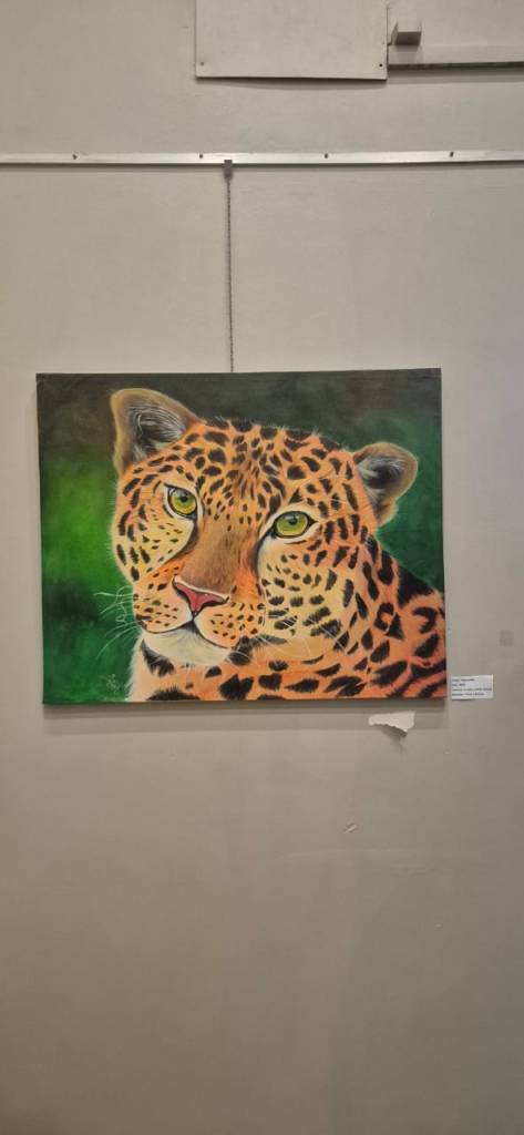 La exposición reúne trabajos centrados en representaciones de animales, realizados a partir de imágenes tomadas de fotografías, libros y redes sociales. En un estilo que la propia artista define como hiperrealista, las obras resaltan las texturas del pelaje y la intensidad de las miradas.