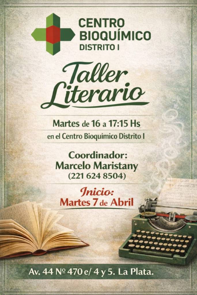 20 marzo, 2026 clipurbanodenoticias Desde el 7 de abril, se desarrollará un Taller Literario en el Distrito I del Centro Bioquímico /Fuente: Centro Bioquímico Distrito I/ Todavía estás a tiempo!! Anotate: email: secretaria@cbdistrito1.org.ar Comparte esto: Compartir en X (Se abre en una ventana nueva) X Comparte en Facebook (Se abre en una ventana nueva) Facebook Más Compartir en LinkedIn (Se abre en una ventana nueva) LinkedIn Compartir en Tumblr (Se abre en una ventana nueva) Tumblr Haz clic en Pinterest (Se abre en una ventana nueva) Pinterest Compartir en Telegram (Se abre en una ventana nueva) Telegram Compartir en WhatsApp (Se abre en una ventana nueva) WhatsApp Me gusta Cargando...