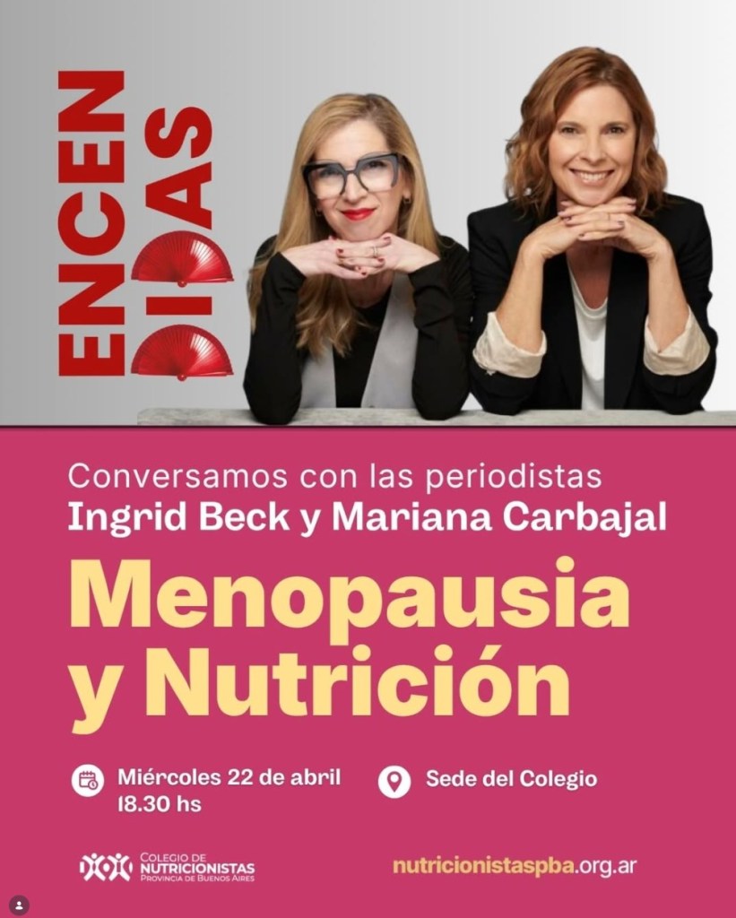 El miércoles 22 de abril te invitamos a un encuentro especial junto a Ingrid Beck y Mariana Carbajal, creadoras de Encendidas, para hablar de experiencias, información, salud y derechos en esta etapa de la vida.