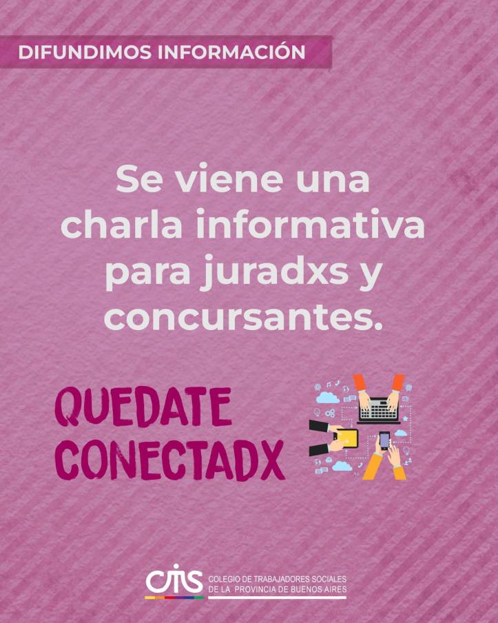 A la brevedad estaremos informando sobre encuentro virtual que realizaremos desde el CATSPBA, el cual tendrá como fin ofrecer información sobre condiciones para el desarrollo de concursos públicos en salud, derechos, obligaciones y condiciones que rigen el acto público de los concursos; el mismo ofrecerá información de utilidad tanto para quienes concursan, como para quienes ofician como jurado.