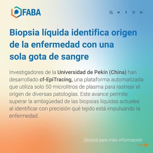 Investigadores de la Peking University desarrollaron una biopsia líquida capaz de identificar el origen de distintas enfermedades con alta precisión utilizando solo 50 µL de plasma.